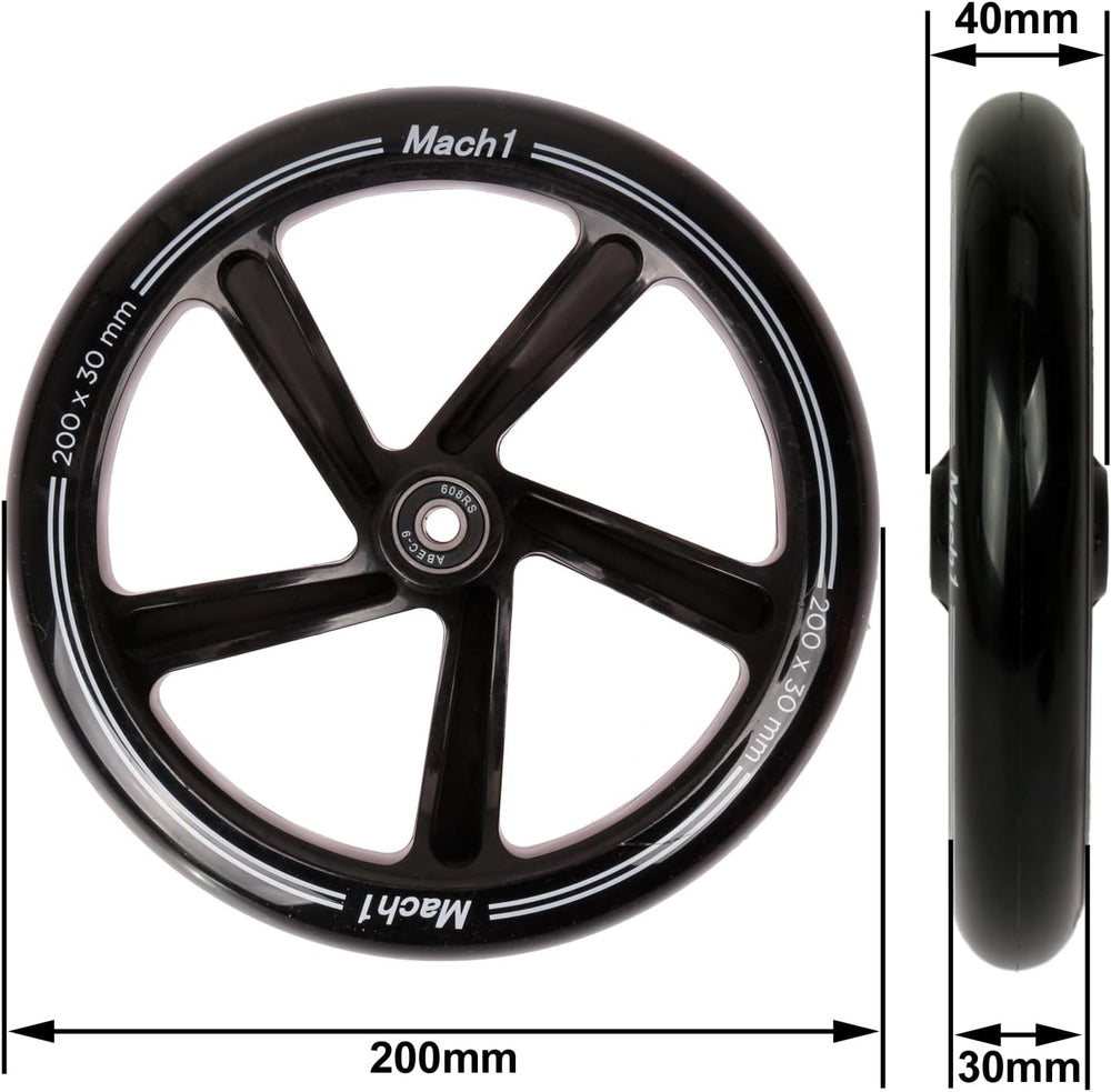 2 Stück 200x30mm Mach1 Kickscooter Rollen-Set inklusive Kugellager + Spacer - Cityroller Ersatz Reif