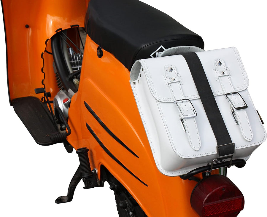 made4bikers Leder Hecktasche mit Schnellverschluss Gepäckträgertasche weiss passend für Simson S50 S