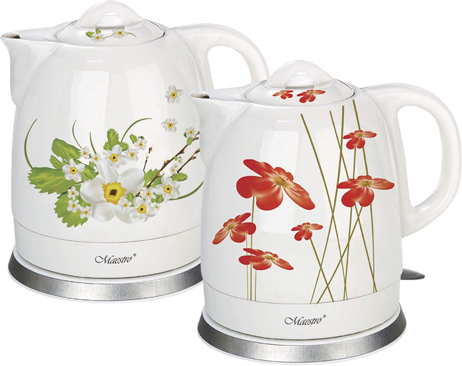 Maestro MR066 Elektrischer Keramikkessel Wasserkocher Keramik Blumendesign 1,5L (Weiss/rot)
