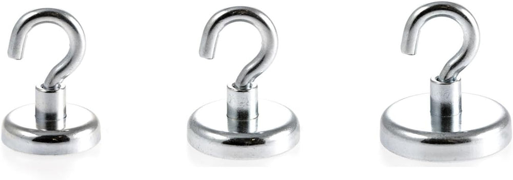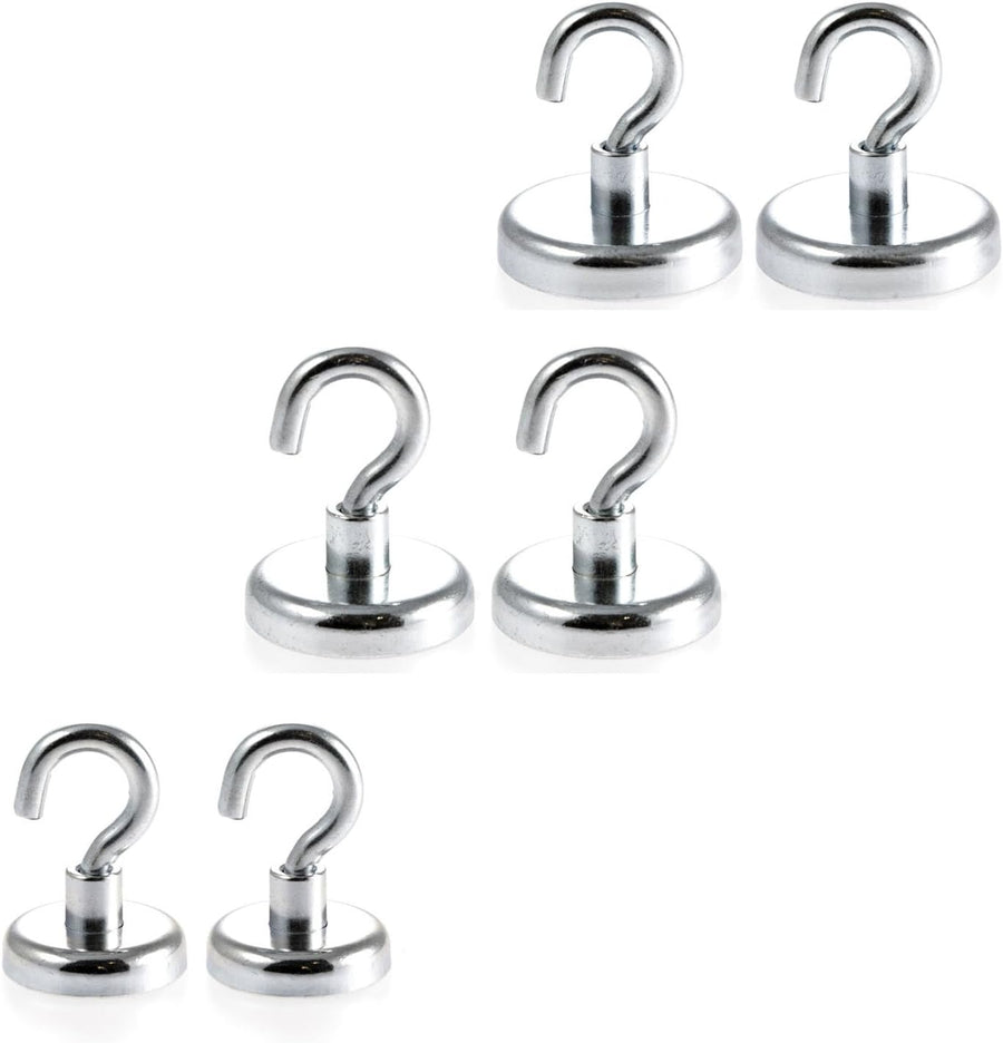 Magnetastico® | Set mit 6 sehr starken Neodym-Hakenmagneten N35 | Je 2x Magnethaken 32, 36 & 42 mm Ø