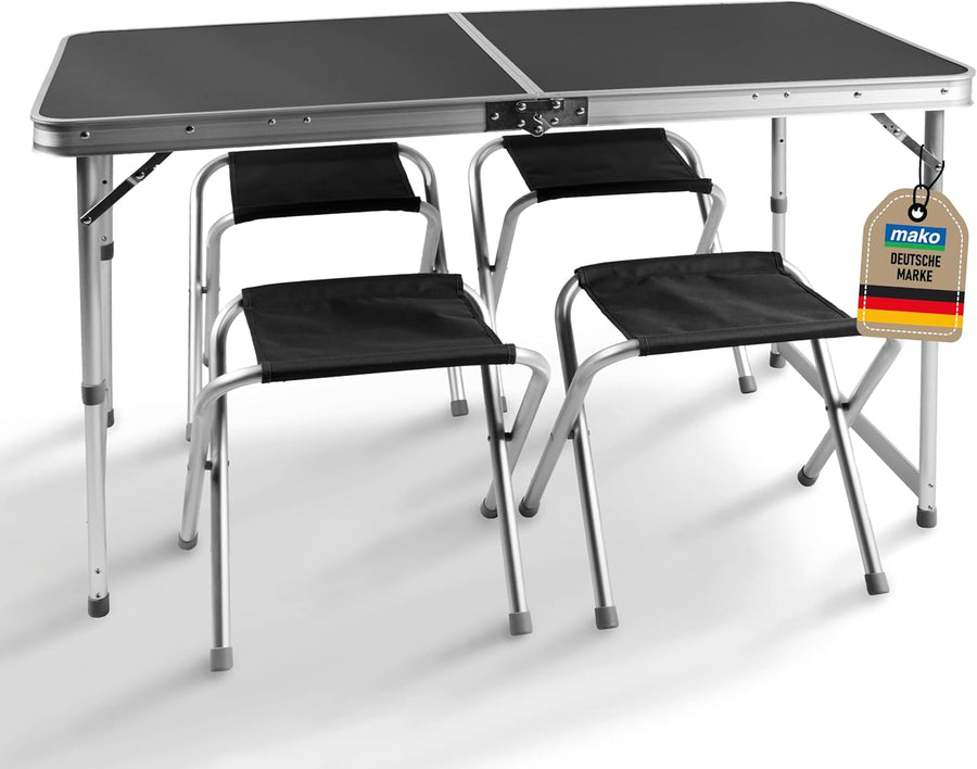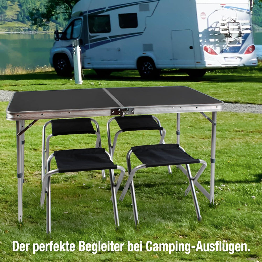 Faltbarer Campingtisch mit Klappfunktion – Stabiler Alu-Klapptisch mit 4 mm MDF-Platte – Höhenverste