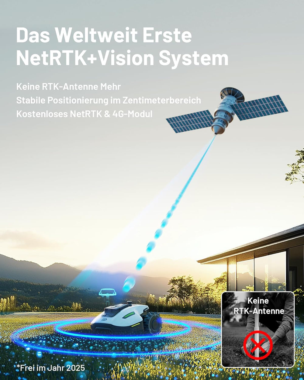 MAMMOTION YUKA 2000 Mähroboter ohne Begrenzungskabel, NetRTK+Vision, Keine RTK-Antenne erforderlich,