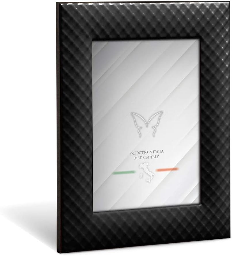Mareli Bilderrahmen für den Tisch, Emailliertes Metall mit Geflecht Typ Netz, Schwarz, Adatta a Foto