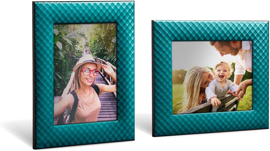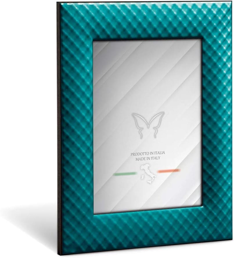 Mareli Bilderrahmen für den Tisch, Emailliertes Metall mit Geflecht Typ Netz, türkis, Adatta a Foto