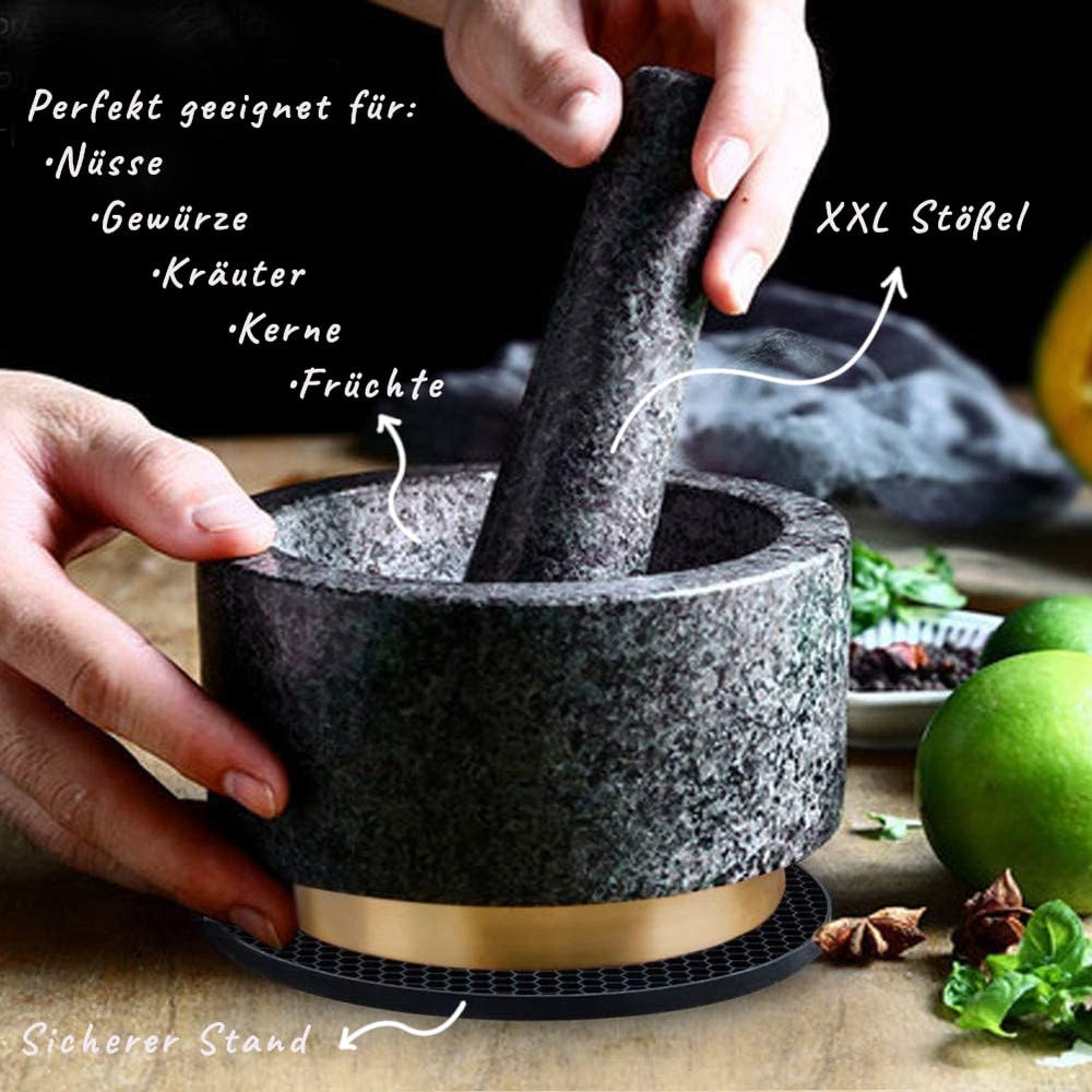MARINDO Granit Mörser mit Stössel | Mörser mit extra langem Stössel & Gold ummantelter Kupferbasis |