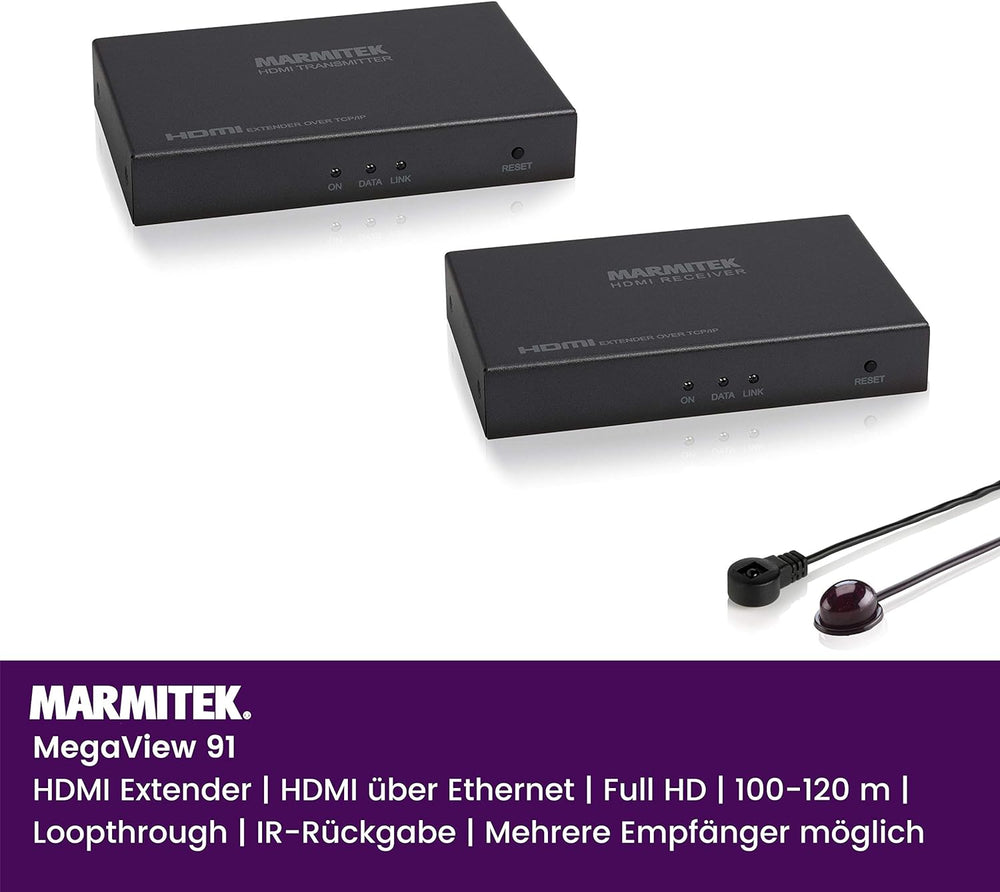 HDMI Extender LAN - Marmitek MegaView 91 - über 1 CAT 5e/6 Kabel oder Netzwerk (IP/LAN) - Full HD -