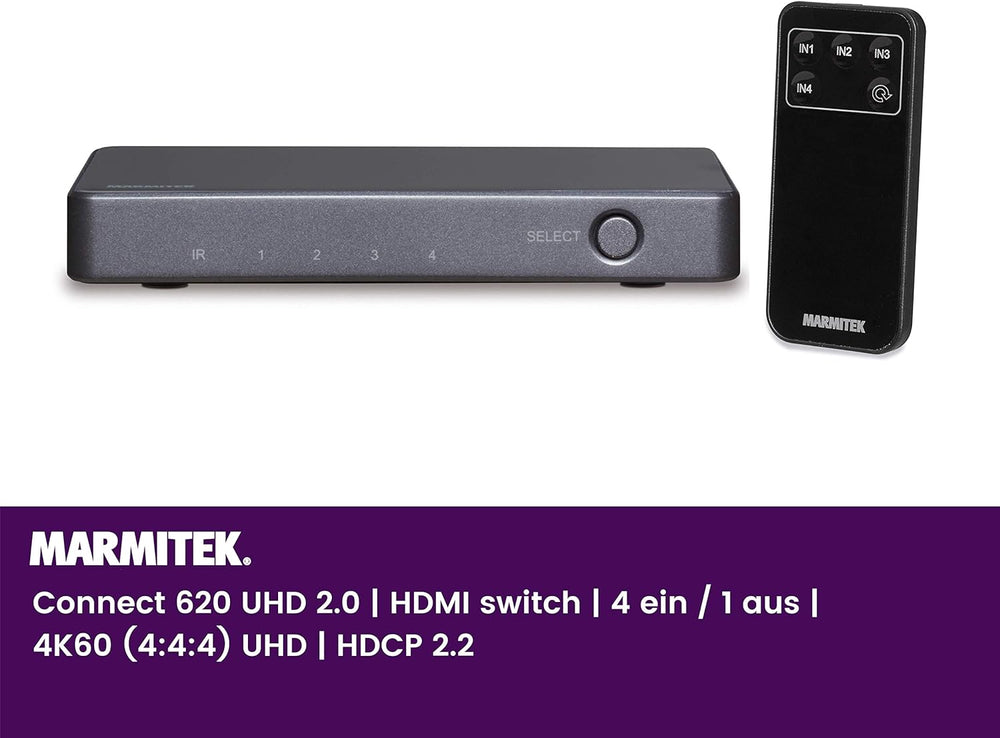 HDMI Switch 4K - Marmitek Connect 620 UHD 2.0 - 4 ein / 1 aus - Ultra HD 60Hz - Automatische Umschal