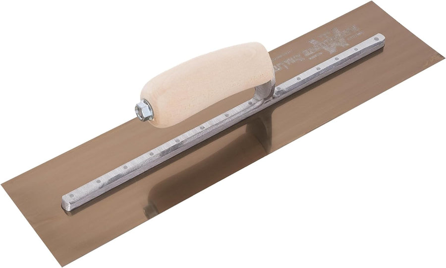 Glättkelle - Gebogener Holzgriff, Goldstahl, 406x102 mm