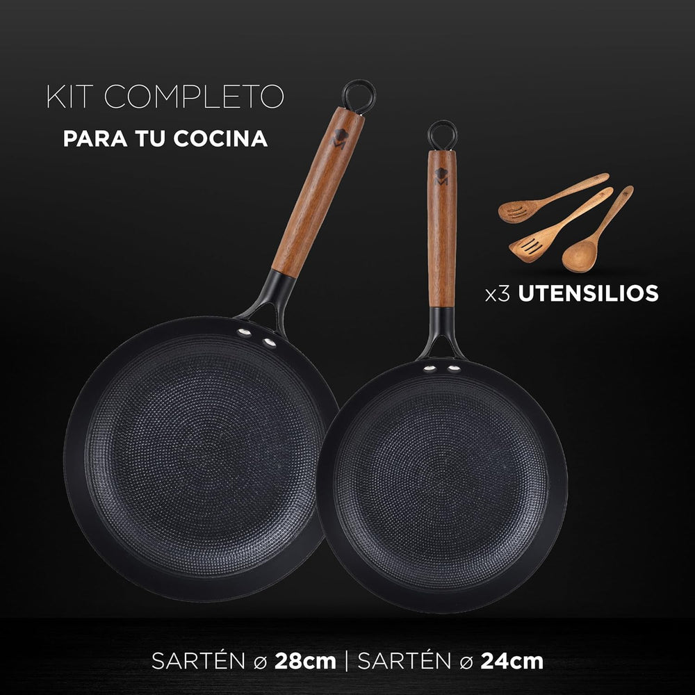 MasterPRO ODIN - Kochset: 24cm & 28cm Bratpfanne-3 Utensilien-Hochwertiges Gusseisen - Antihaftbesch