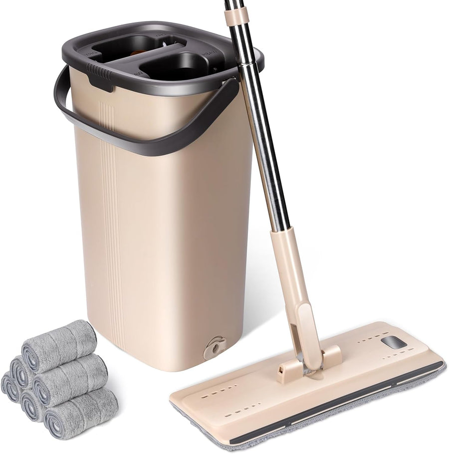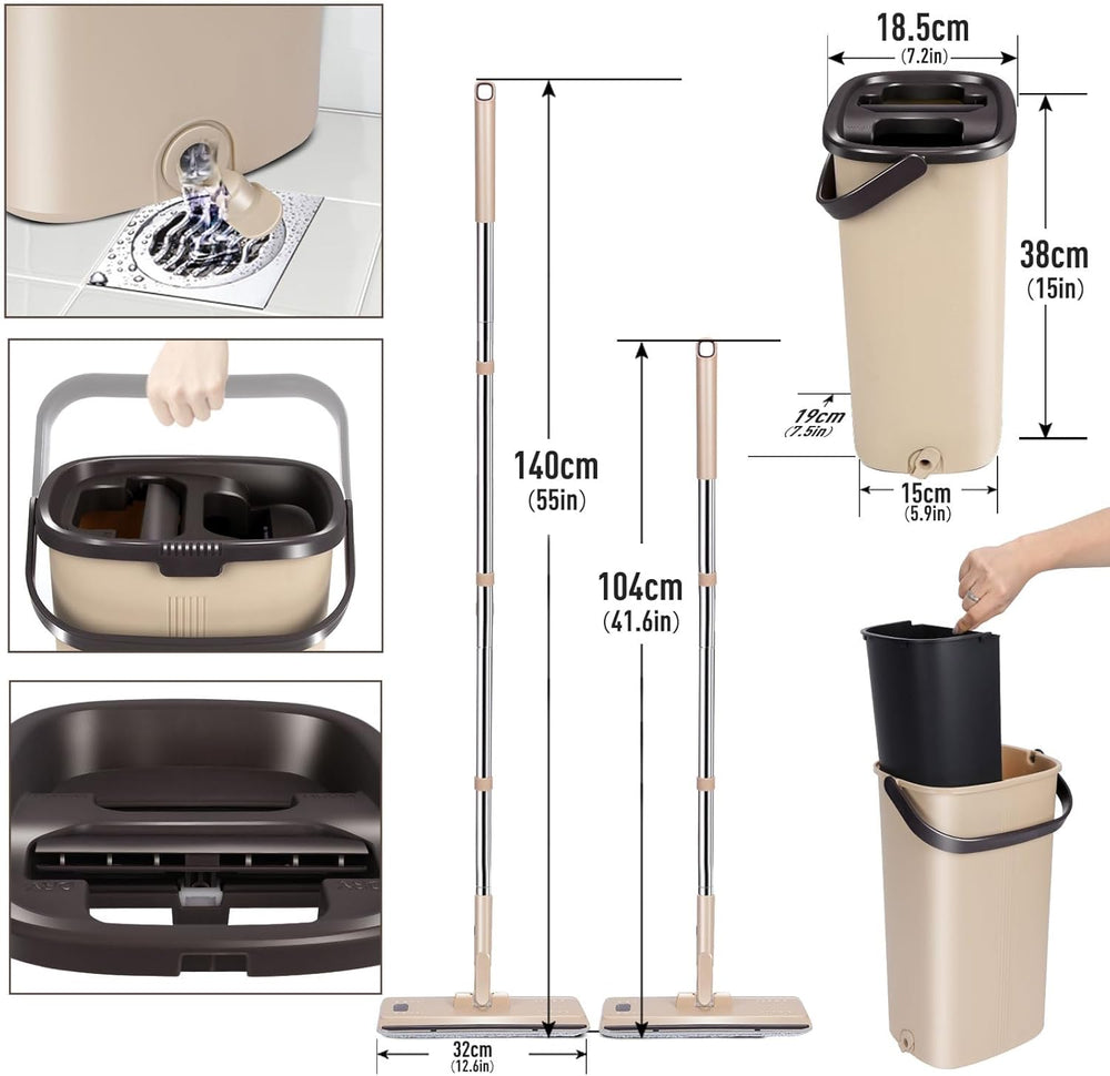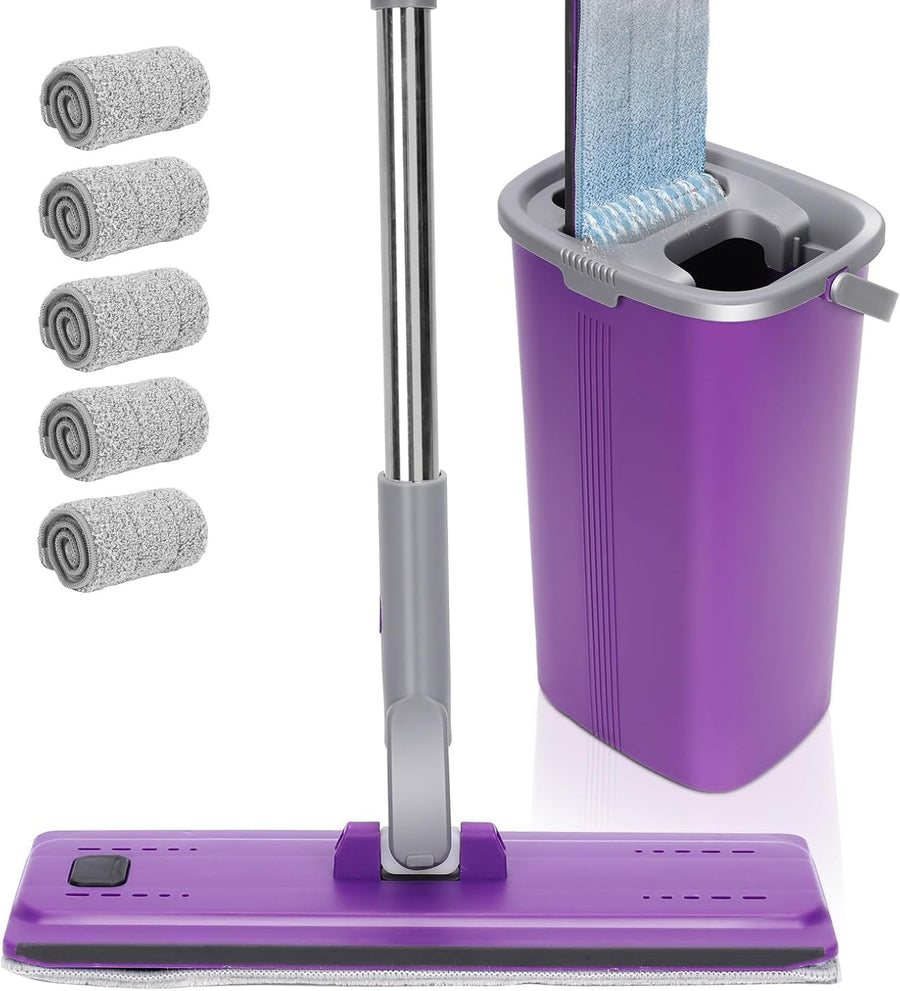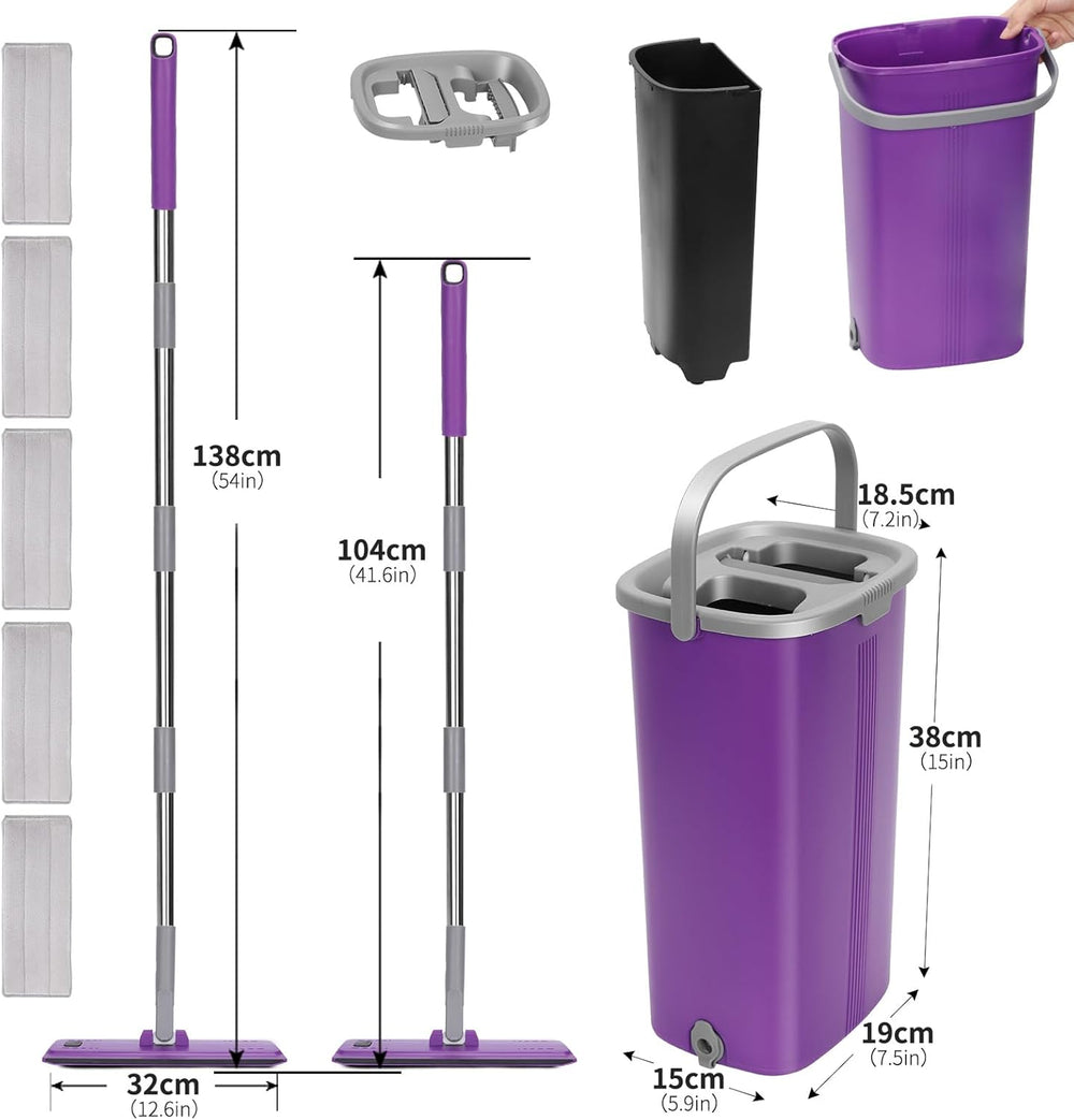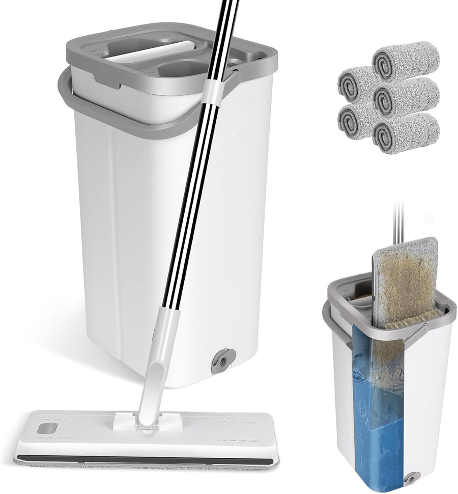 Masthome Flacher Wischmopp und Putzeimer Set,Flach Mopp Bodenwischer Putzset für Nass- Trockennutzun