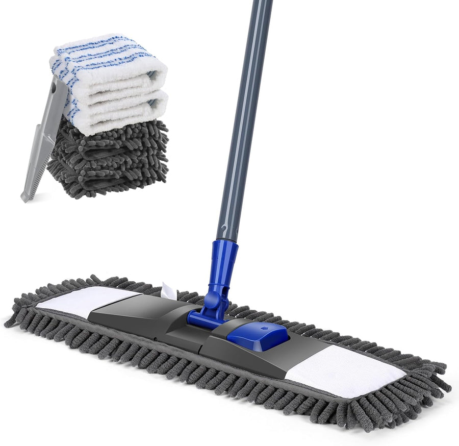 Masthome Flach Bodenwischer Set,128 cm Chenille Flach Wischmopp mit 4 Wischpads,Wischer Set für Schn