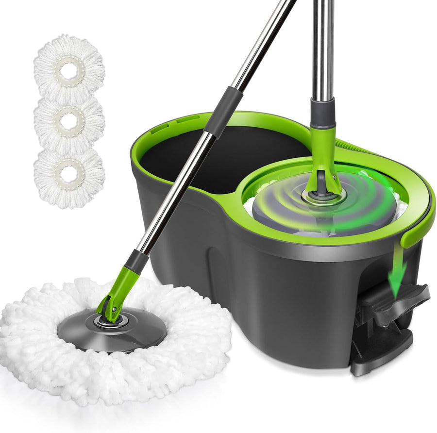Masthome Wischmopp Set mit Eimer,Wischer mit Auswringfunktion und 138CM Edelstahl Griff,Bodenwischer