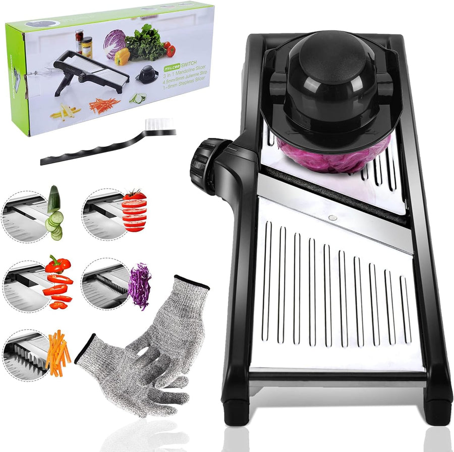 Masthome Gemüsehobel Verstellbar Mandoline,Gemüseschneider Edelstahl mit Schnittfesten Handschuhen,M