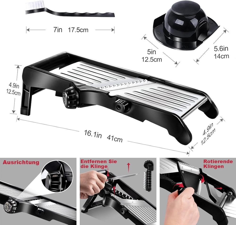 Masthome 5-in-1 Gemüsehobel Mandoline, Verstellbar Edelstahl Gemüsereibe, Reibe für Gemüse, Multifun