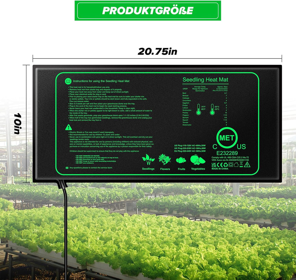 Heizmatte Pflanzen mit Thermostat 50W, Wärmematte für Sämlinge und Reptilien, wasserdichte Setzlings