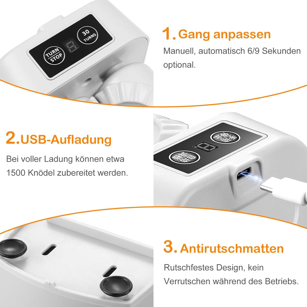 MaxEarn Automatische Knödelmaschine, Elektrische Teigtaschenformer mit Löffel & Bürste, USB-Aufladun