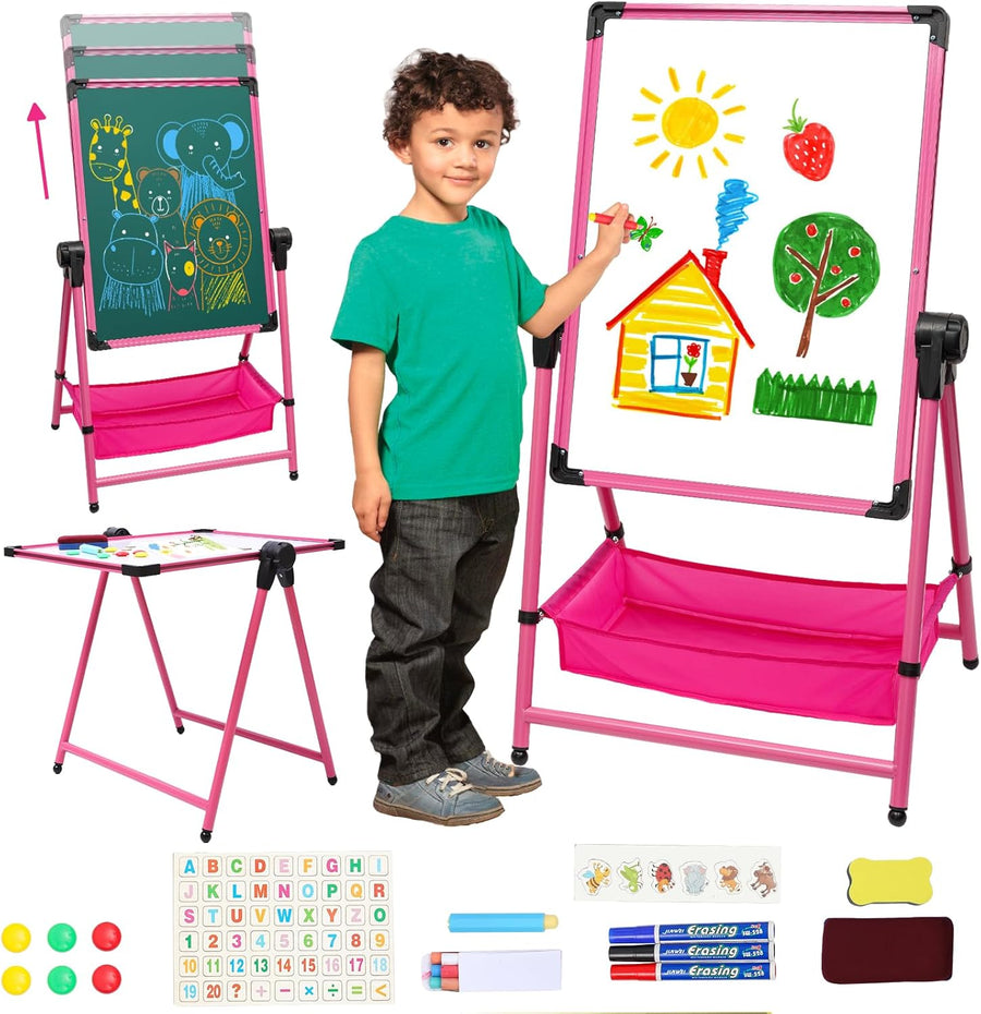 Kinder Staffelei Malerei Doppelseitige Tafel für Kinder mit Kreidetafel & Whiteboard Höhenverstellba