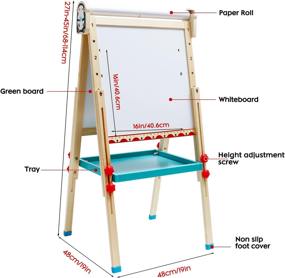 Maycoly Kinder Staffelei mit Papierrolle doppelseitiges Whiteboard und Kreidetafel Holz Kunst Staffe