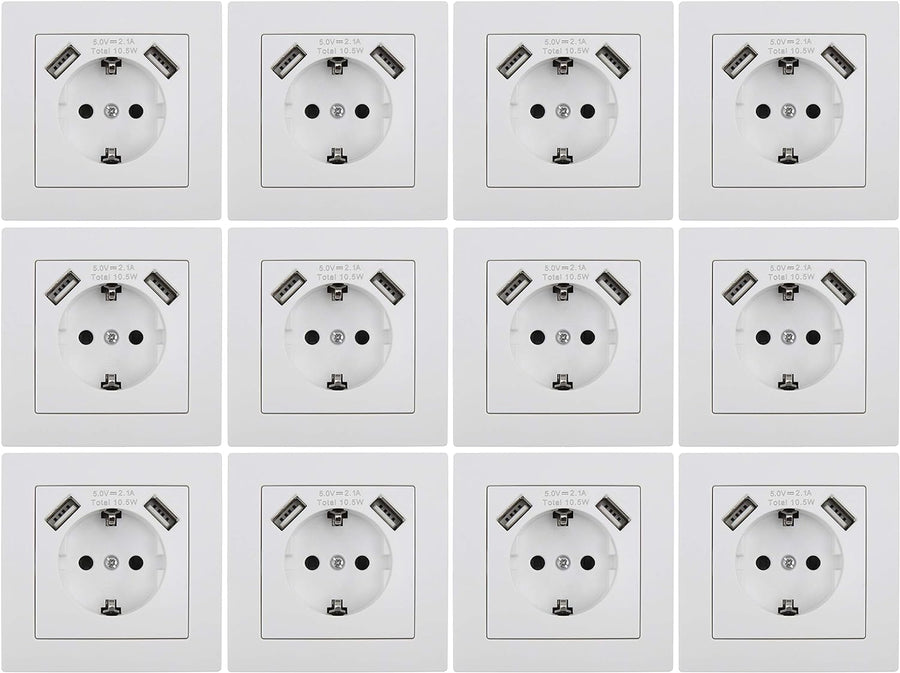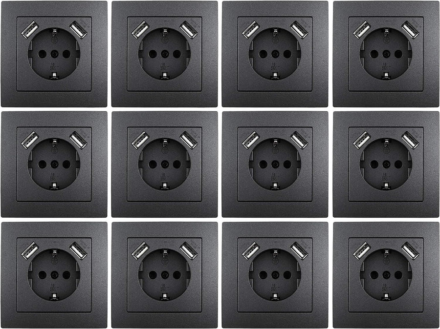 MC POWER - 12er Pack Steckdosen mit 2x USB + Rahmen | FLAIR | USB-Steckdosen Set mit 1-fach Rahmen i
