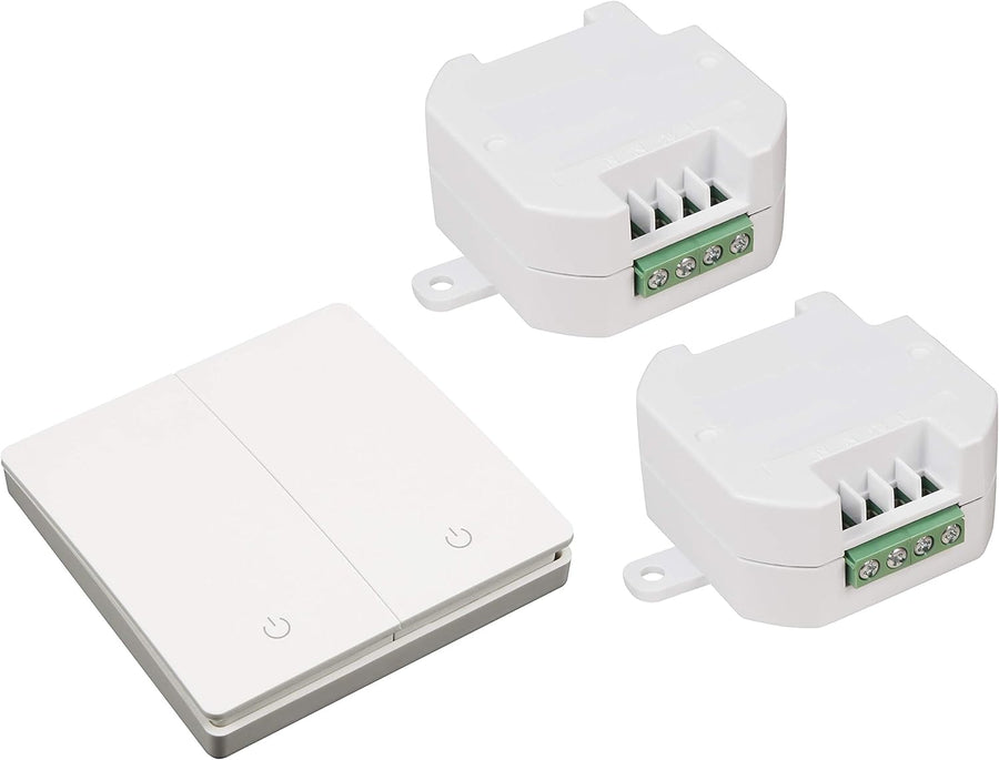 MC POWER - Funk-Schalter Set | Kinetic | 2x Schalterdosen-Empfänger + 2-fach Wandtaster, max. 2.300W