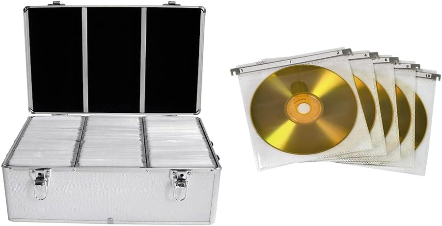 MediaRange Archivierungskoffer für 200 Discs, Aluminium-Optik, silber, 18cm & Hama CD Doppel-Schutzh