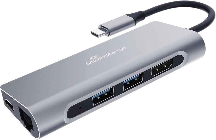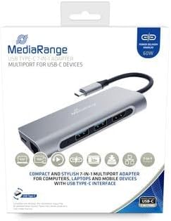 MediaRange USB C Hub, 7in1 Typ-C Multiport Adapter für bis zu 7 Endgeräten, mit USB 3.2 Gen, HDMI, R