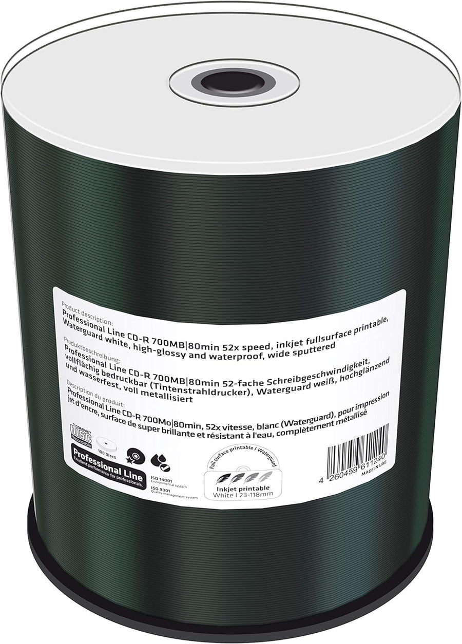 Professional Line CD-R 700MB|80min 52-fache Schreibgeschwindigkeit, vollflächig bedruckbar (Tintenst