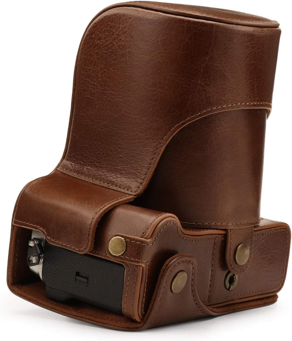 MegaGear Ever Ready Echtleder Kamera-Halbtasche mit Trageriemen kompatibel mit Fujifilm X Series X-E