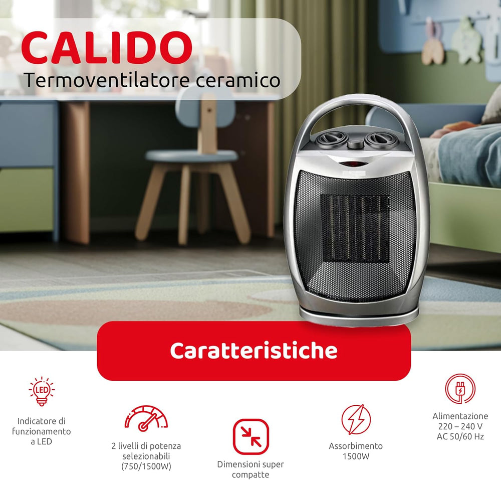 Melchioni Family CALIDO, Termoventilatore ceramico, Oscillazione automatica, 1500W, Protezione contr
