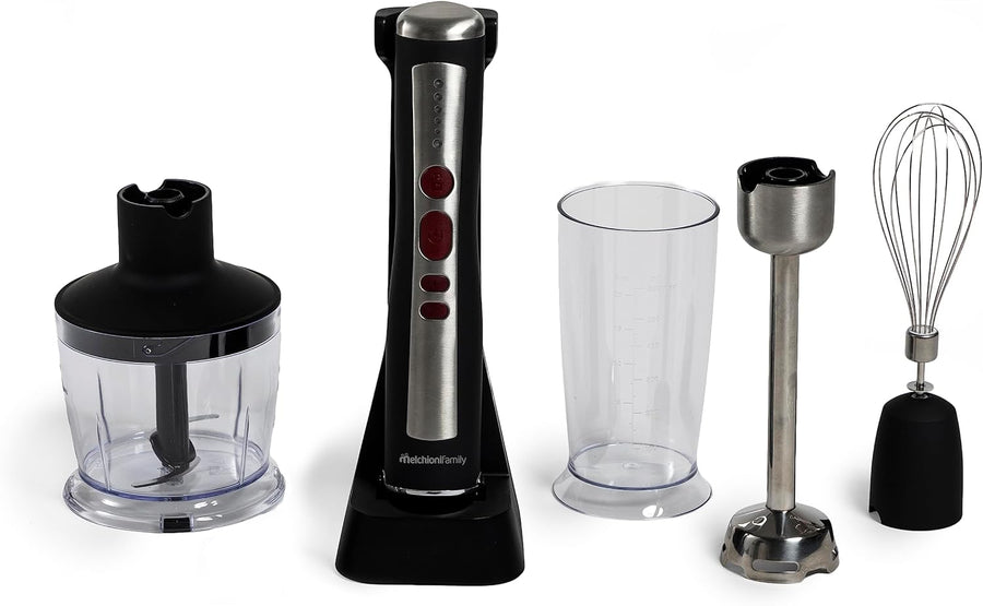 Melchioni Family | Wiederaufladbarer kabelloser Stabmixer Set mit Schneebesen, Zerkleinerer, Mixer u