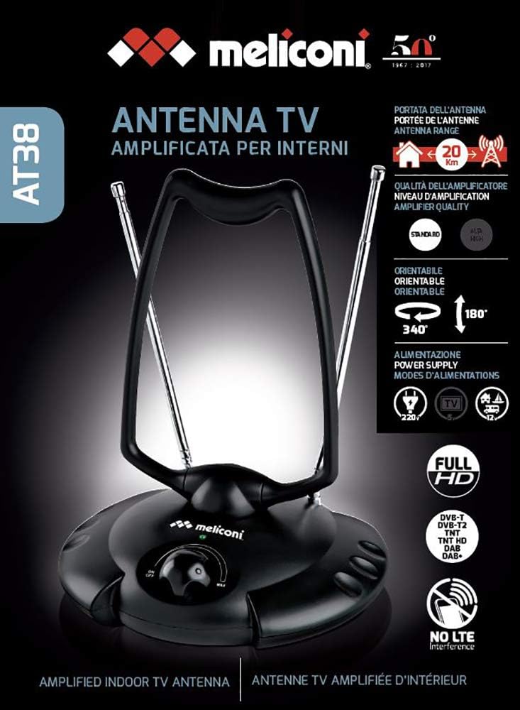 Meliconi AT38 Verstärkte Tv-Zimmer-Antenne schwarz, Schwarz