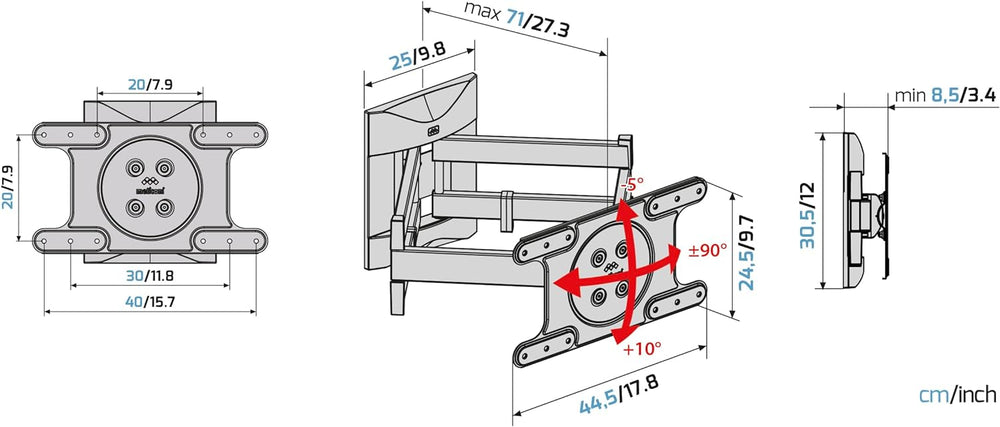 Meliconi Space System FULLMOTION 400, TV-Wandhalterung mit Arm und Doppelrotation, Wandhalterung für