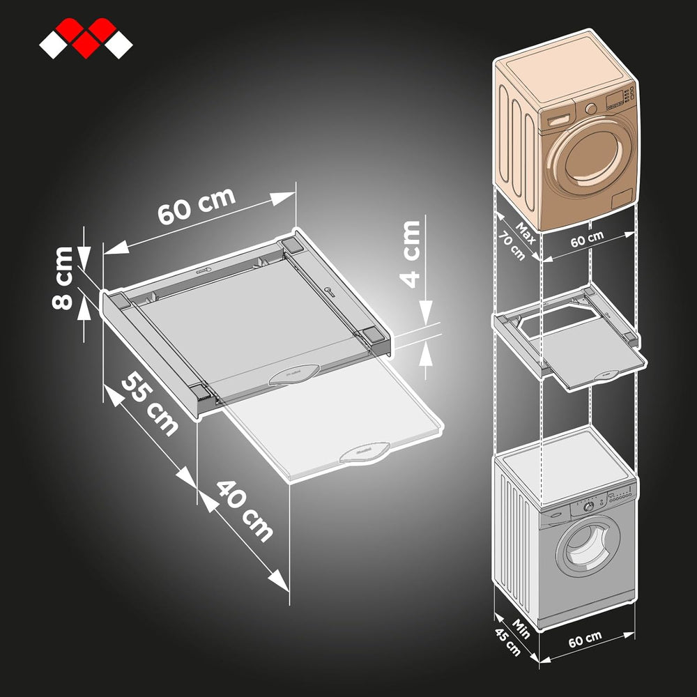 Meliconi, Torre Dark, Universal-Wäschetrockner-Zwischenbaurahmen, FSC®, ausziehbare Holzablage aus F
