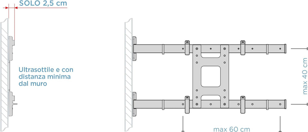 Meliconi Space System DUALMOTION OLED TV-Wandhalterung mit Doppelarm und Doppelrotation, OLED-TV-Hal