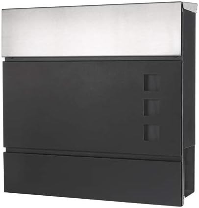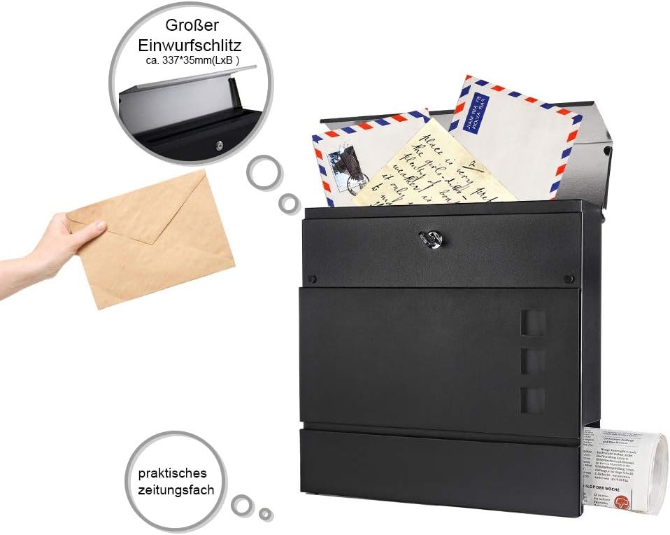 Melko Briefkasten mit Zeitungsfach Schwarz Wandmontage Postkasten mit Edelstahl Schutzklappe und Sic
