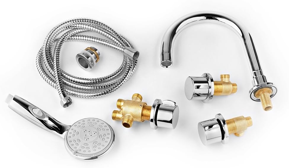 Melko Badewannenarmatur mit Handbrause 5-Loch Wannenrandarmatur Chrom Fliesenrandarmatur Aufsatz-Was