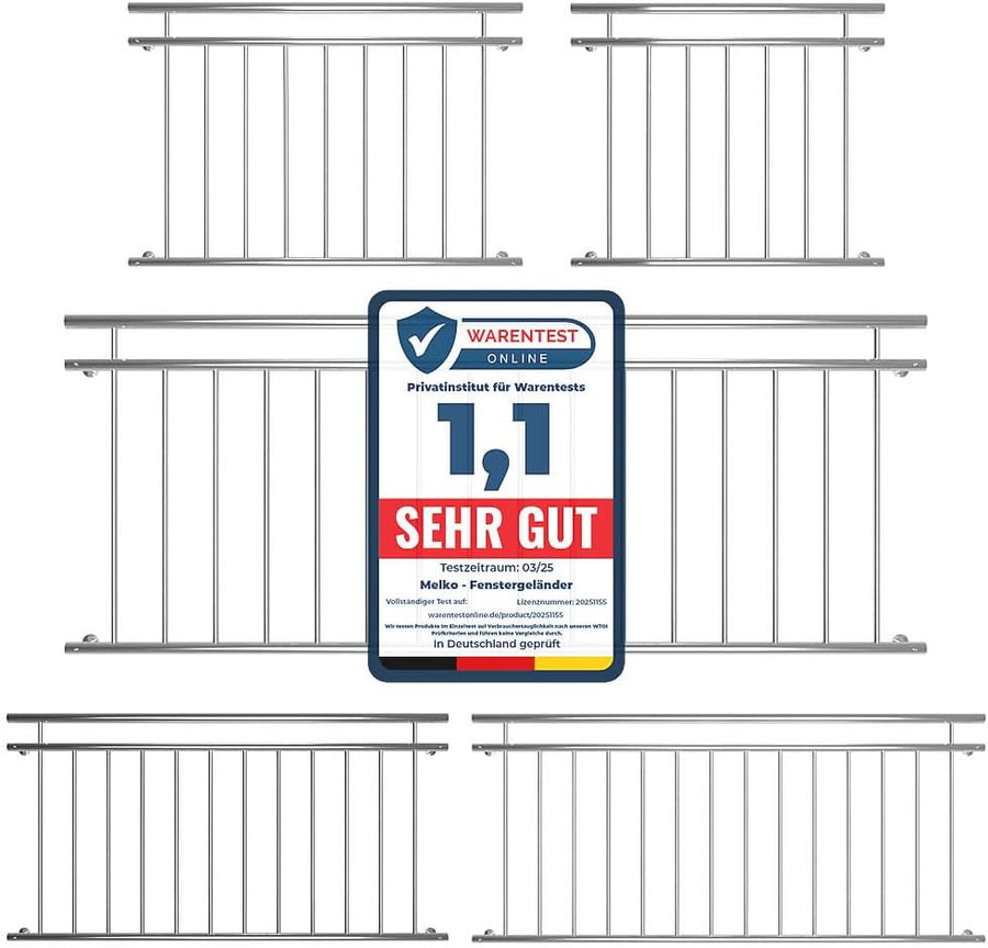 Melko Edelstahl Balkongeländer französischer Balkon 90x184 cm Terrassengeländer V2A Fenstergeländer