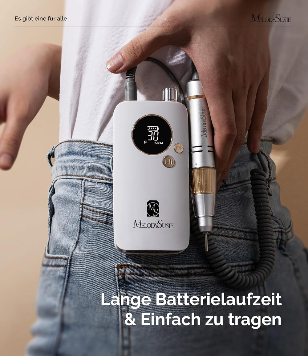 MelodySusie Professionell Nagelfräser, 30000 U/min Elektrische Nagelfeile Wiederaufladbar Tragbar Ak