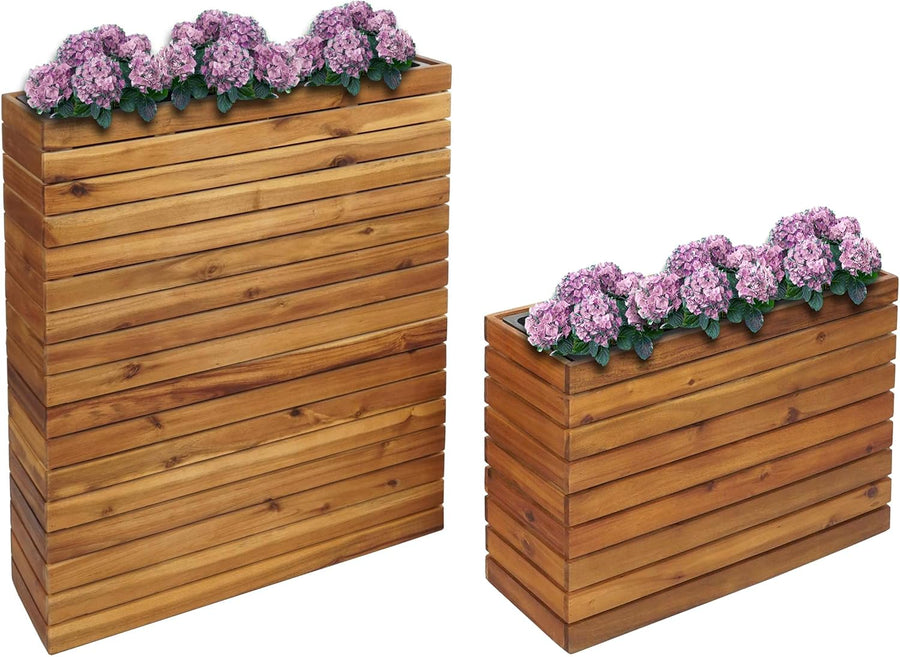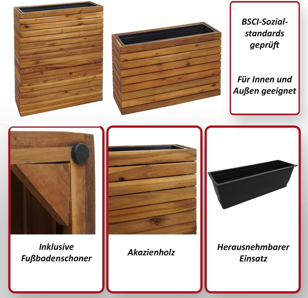 2er-Set Pflanzkasten HWC-L21, Pflanzkübel Blumentopf Hochbeet, eckig Outdoor Akazie Holz MVG-Zertifi