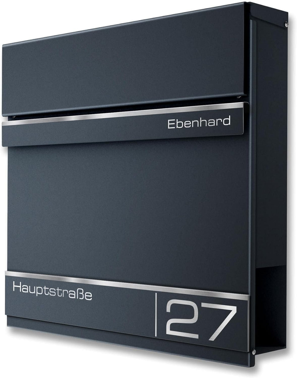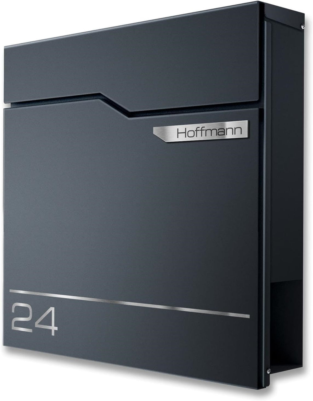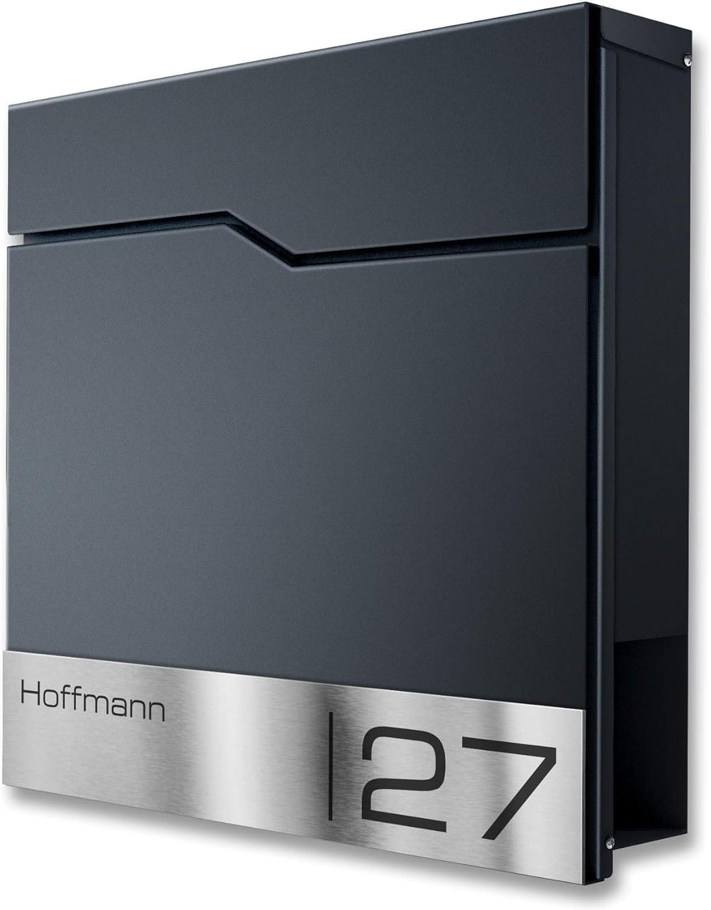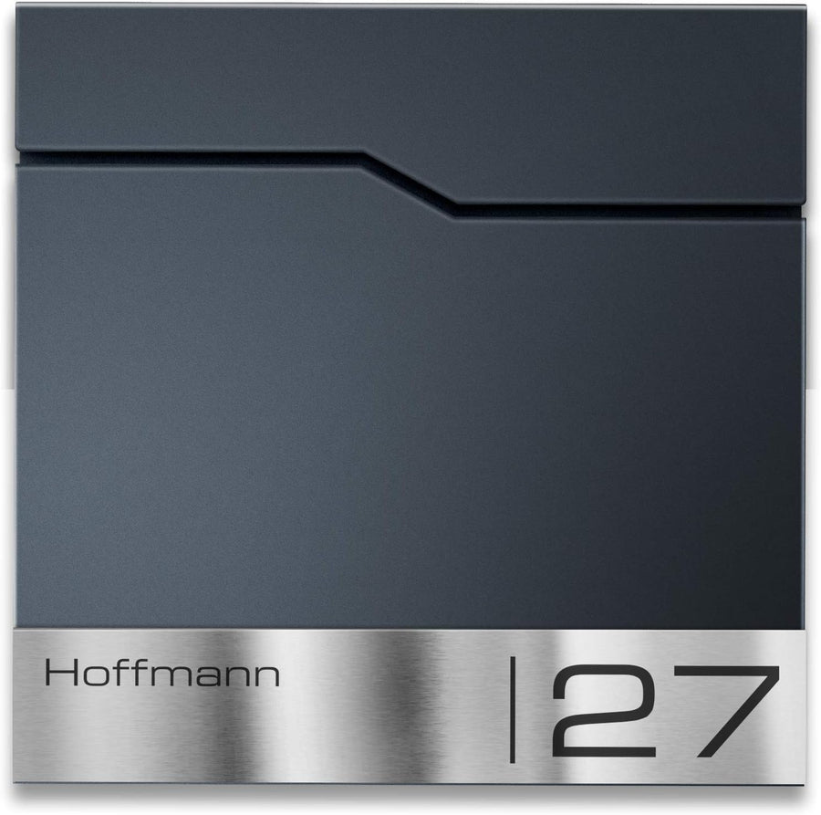Metzler Exklusiver Briefkasten in Anthrazit RAL 7016 Hoffmann - Wandbriefkasten mit V2A Edelstahl-Na
