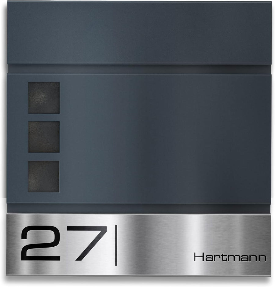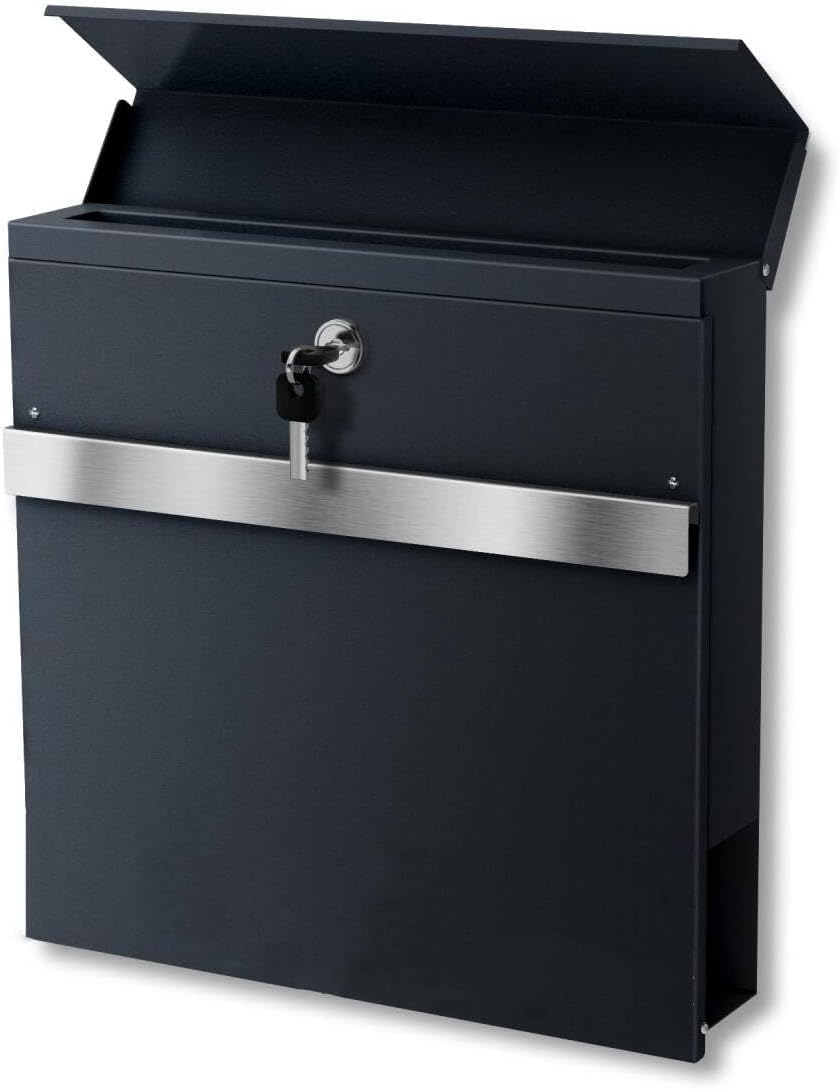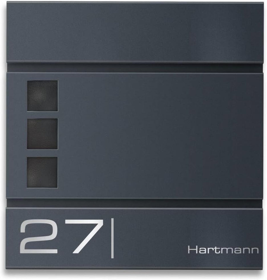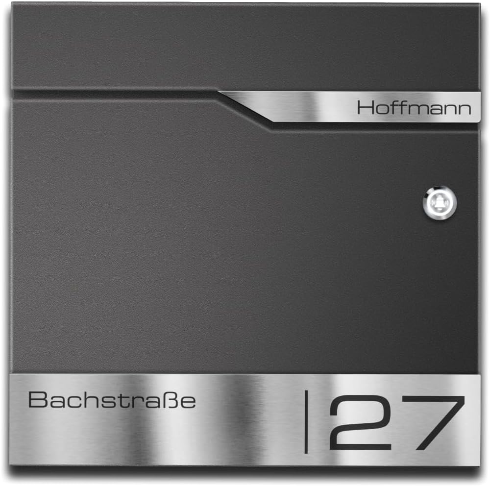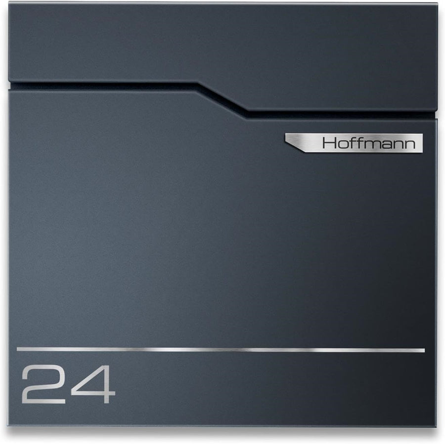 Metzler Exklusiver Briefkasten in Anthrazit RAL 7016 Hoffmann - Wandbriefkasten mit V2A Edelstahl-Na