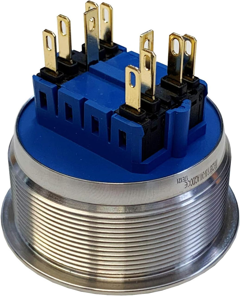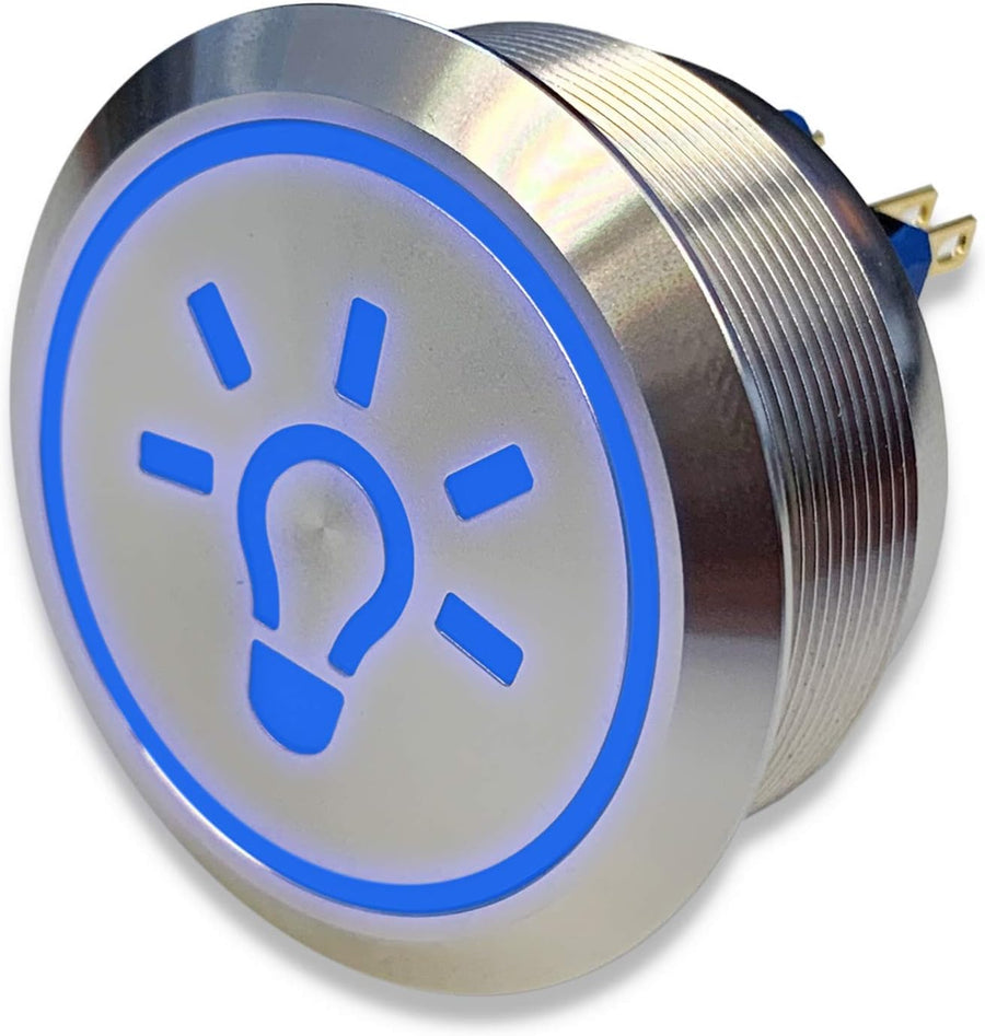 Edelstahl Drucktaster Ø40mm, 2-polig, 10 Pin, Symbol Licht LED Ring (Blau), Blau