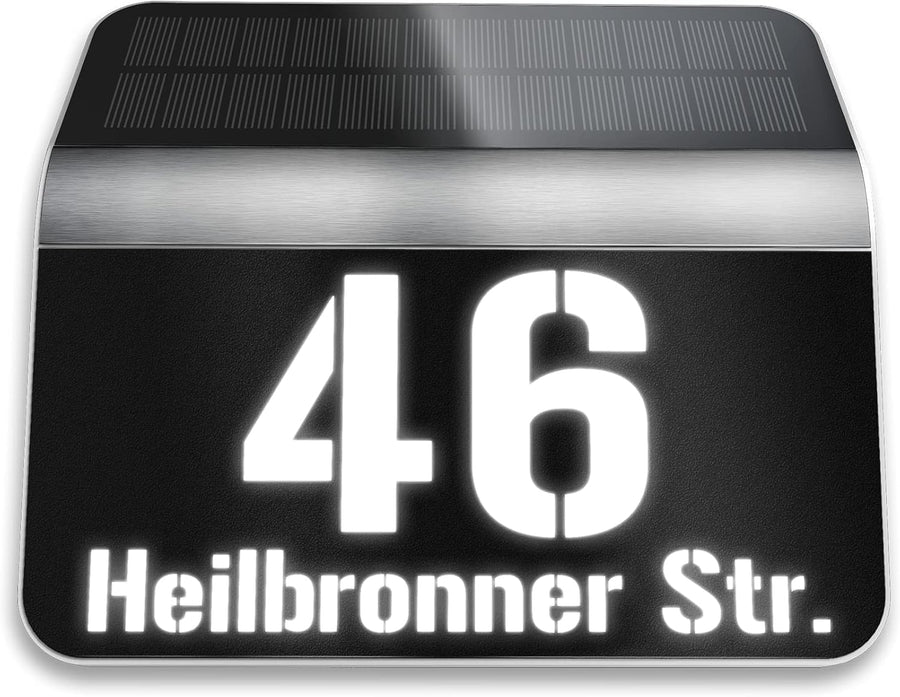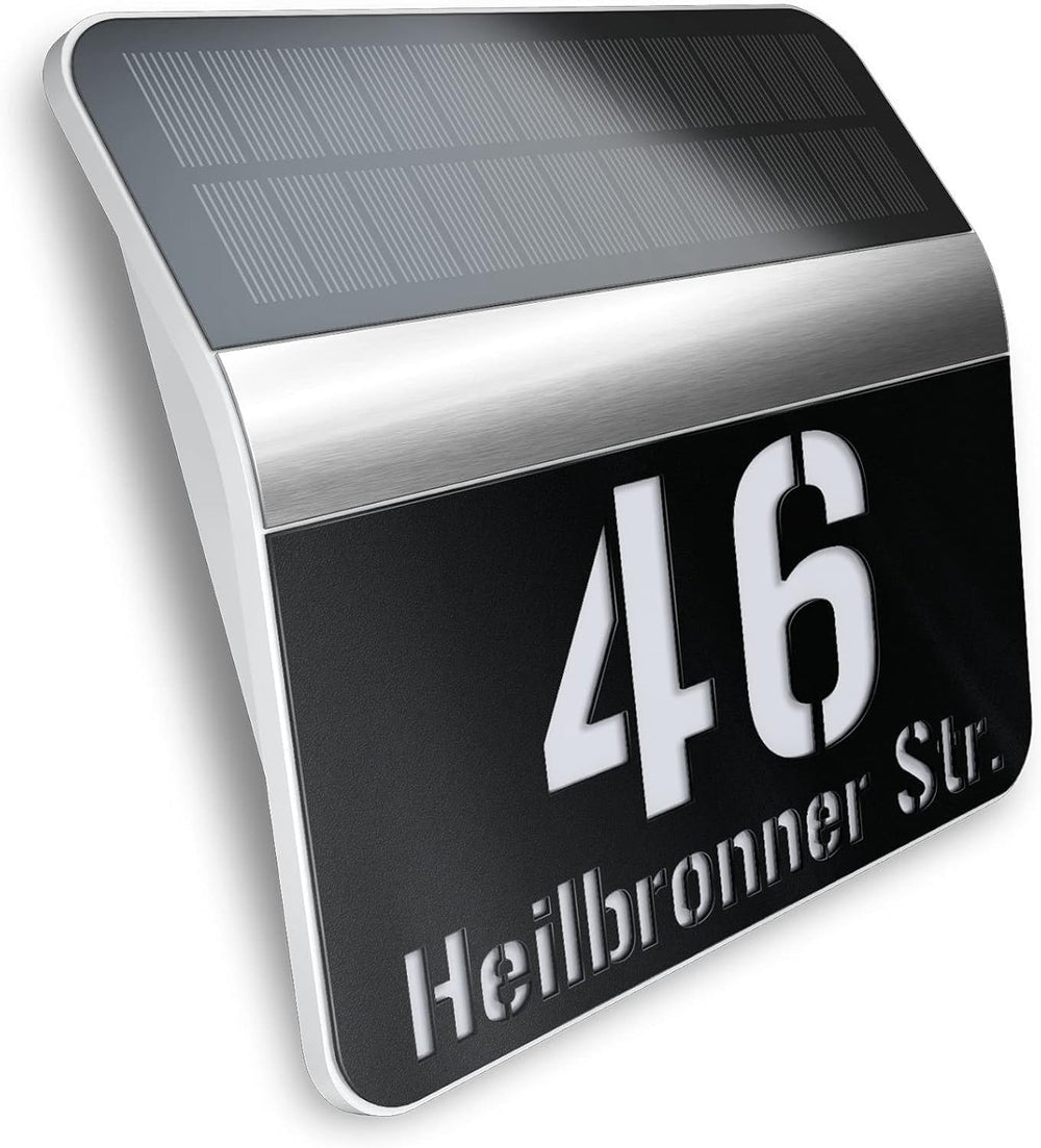 Metzler Hausnummer mit Solar Beleuchtung in Schwarz - LED beleuchtete Hausnummer mit Dämmerungssenso