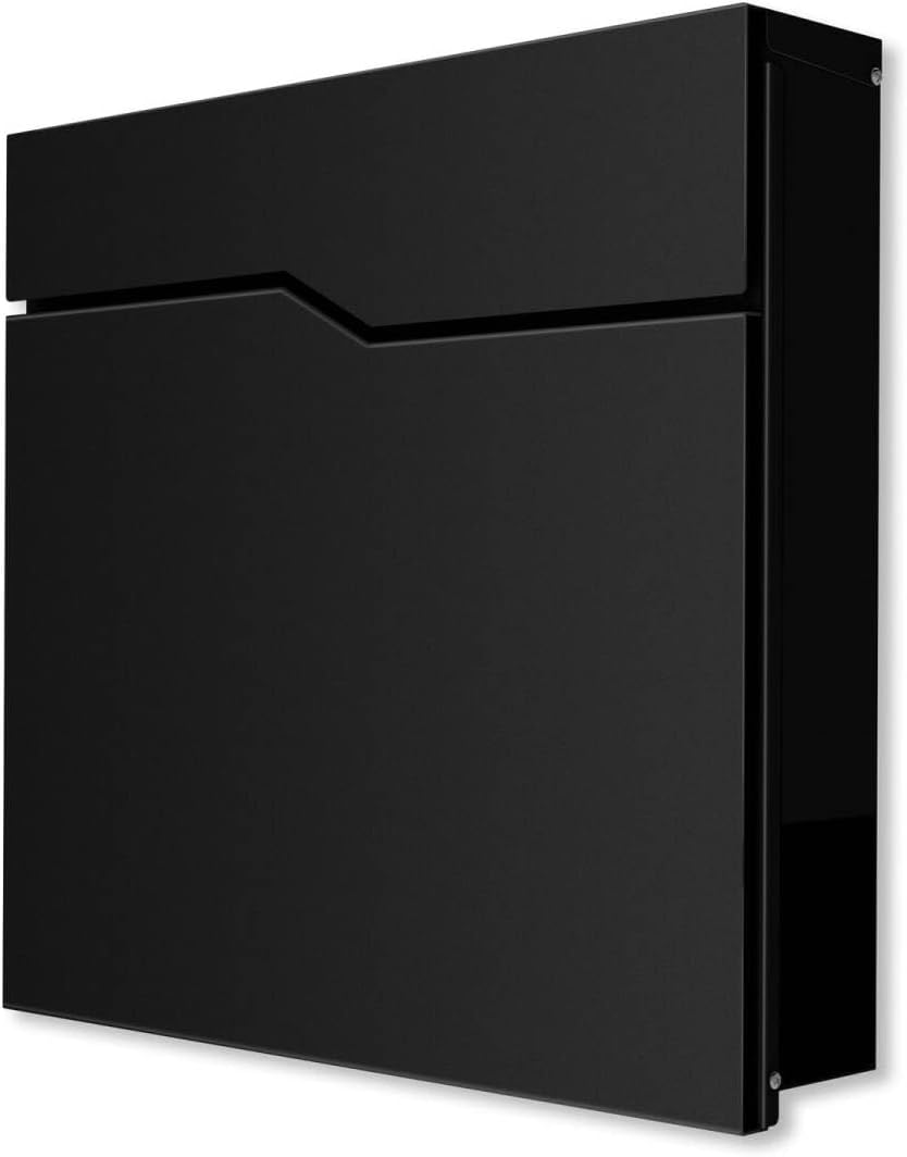 Metzler Briefkasten pulverbeschichtet in Tiefschwarz RAL9005 - Wandbriefkasten mit Zeitungsfach - Po