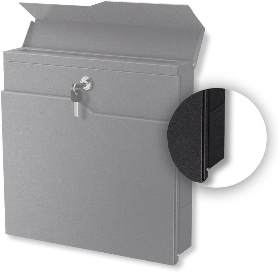 Metzler Briefkasten pulverbeschichtet in Graualuminium RAL9007 - Wandbriefkasten mit Zeitungsfach -