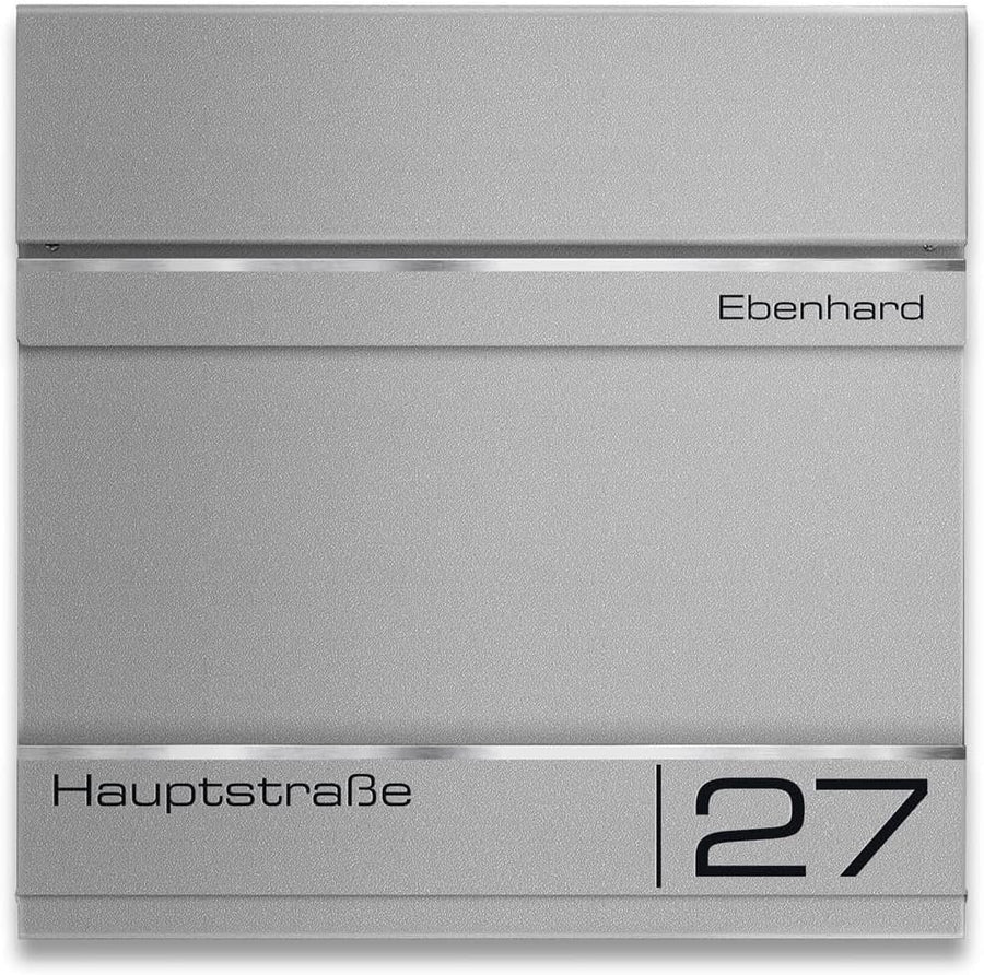 Metzler Briefkasten Graualuminium - Postkasten mit individueller Laser Gravur - RAL9007 Graualuminiu
