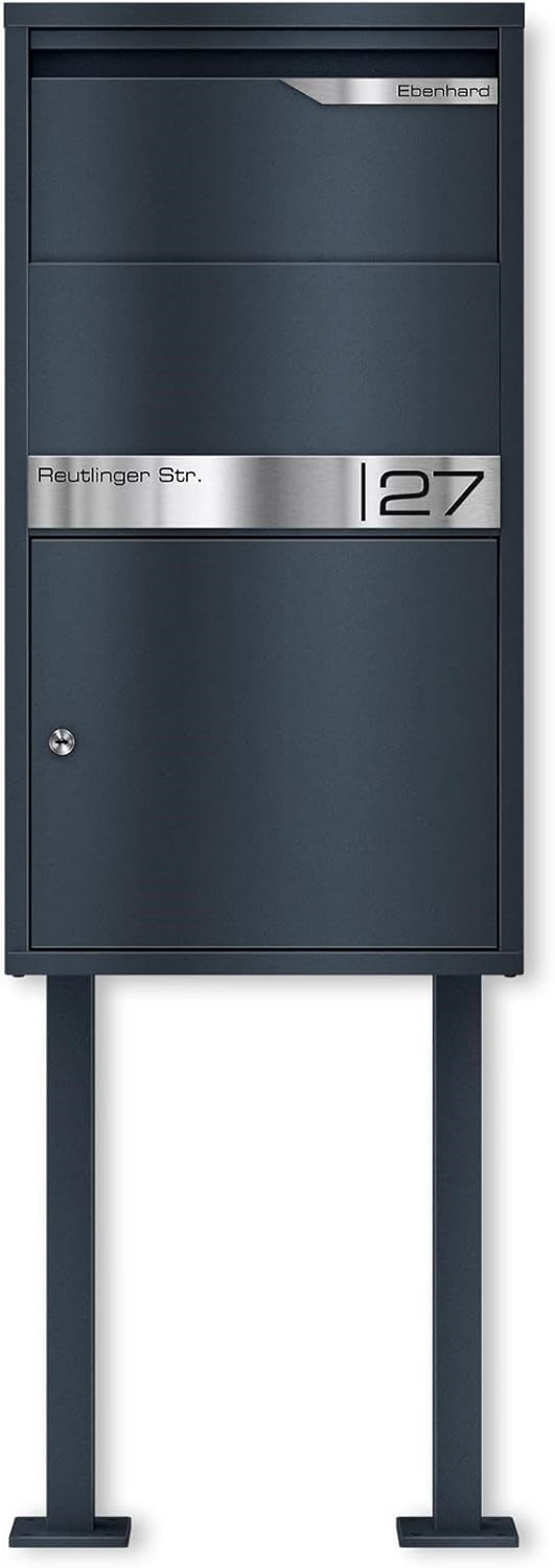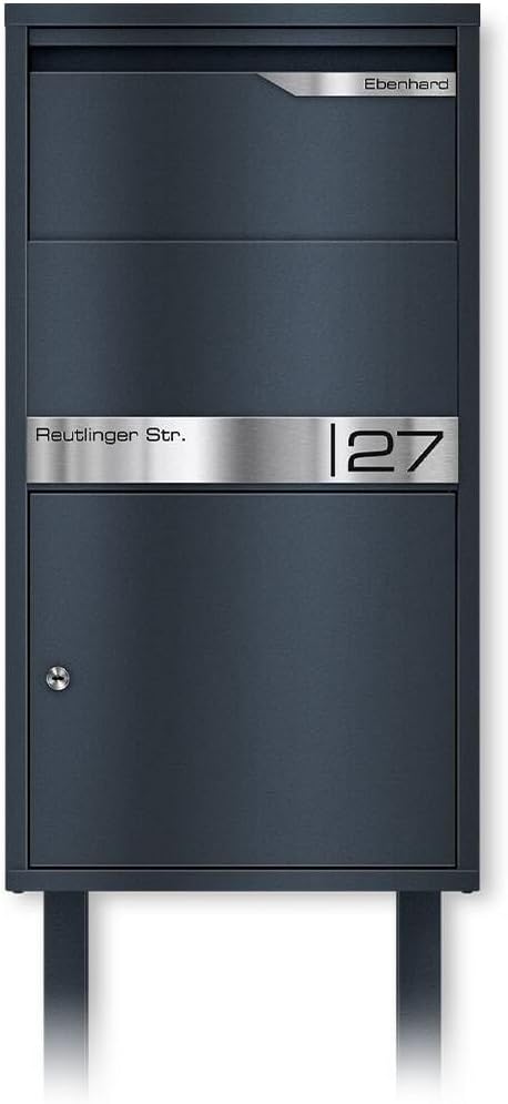 Metzler moderner Paketbox mit Ständer in Anthrazitgrau matt RAL 7016 personalisiert mit Edelstahl Ha
