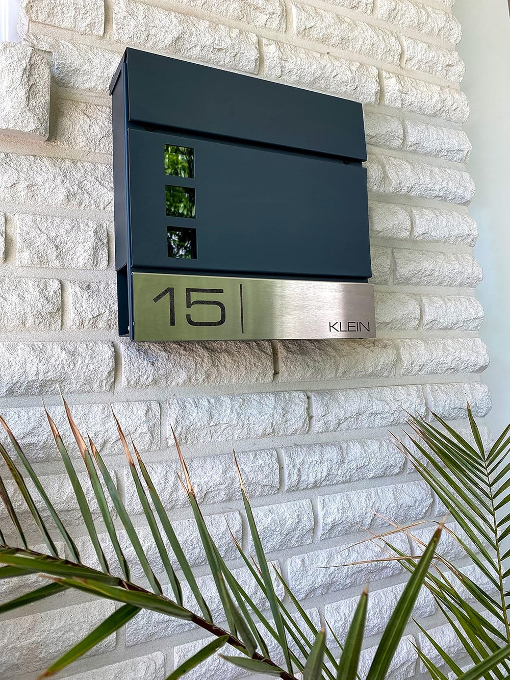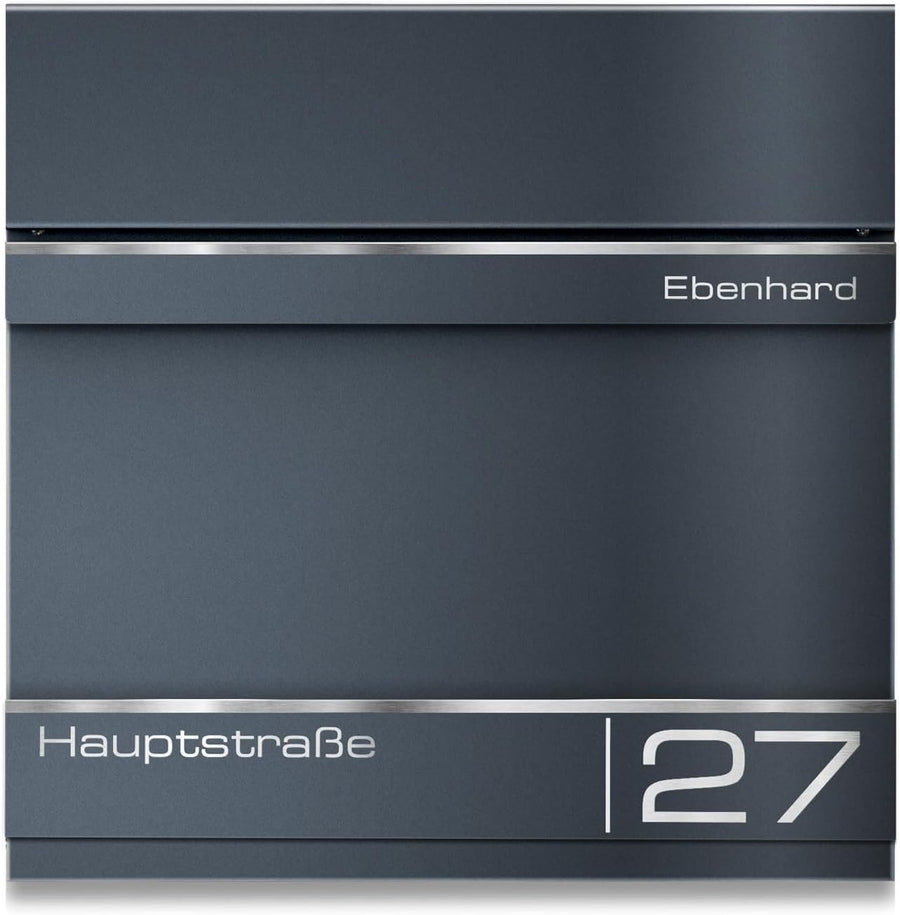 Metzler Briefkasten in Anthrazit RAL 7016 Enno - Wandbriefkasten mit V2A Edelstahl-Namensschild & Ze