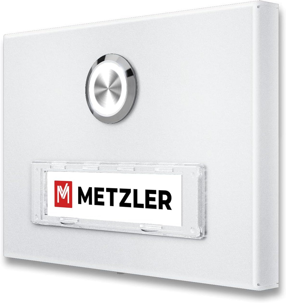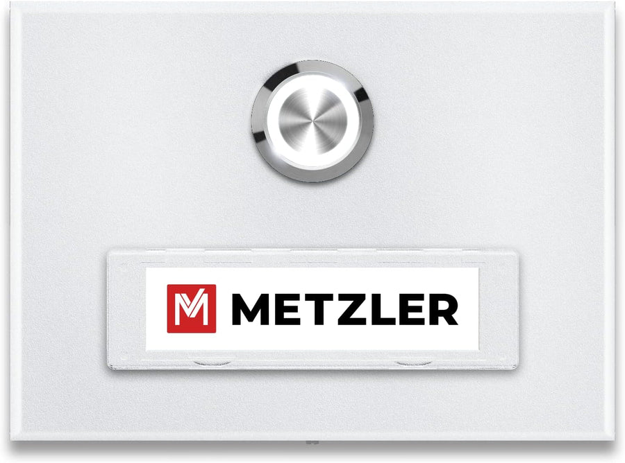 Metzler Türklingel in Weiss - Austauschbares Namensschild - Pulverbeschichtet in RAL 9016 Feinstrukt