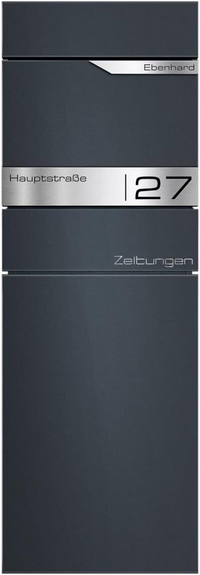 Metzler Briefkasten mit Zeitungsfach Anthrazit - Personalisiert mit Edelstahl V2A Namensschild -Pulv